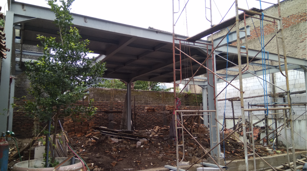 Setelah desain selesai, kontraktor akan melakukan fabrikasi. Proses ini dilakukan di bengkel fabrikasi baja. Pelat dan profil baja dipotong sesuai ukuran. Kemudian dilas menjadi komponen struktur, seperti kolom, balok, dan bracing. Proses fabrikasi harus presisi tinggi. Ini memastikan semua bagian pas saat dipasang di lapangan.